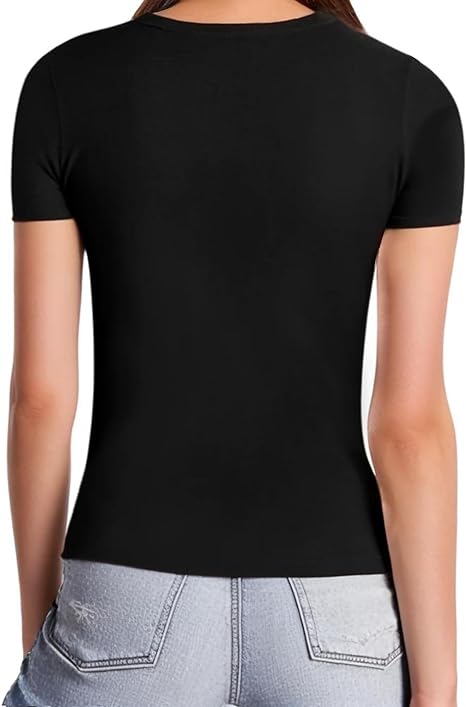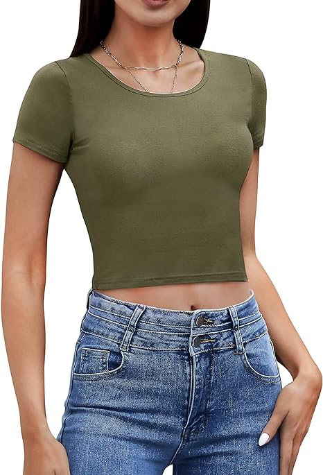 Women's Basic Tight Short Sleeve Women Cute Trendy Crop Tops Scoop Neck Crop