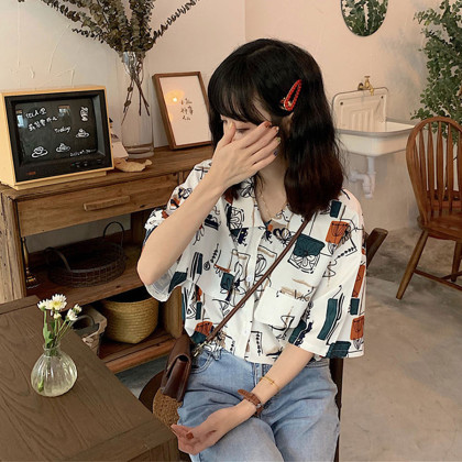 Flower Shirt Girl Short sleeved Retro Summer Girl