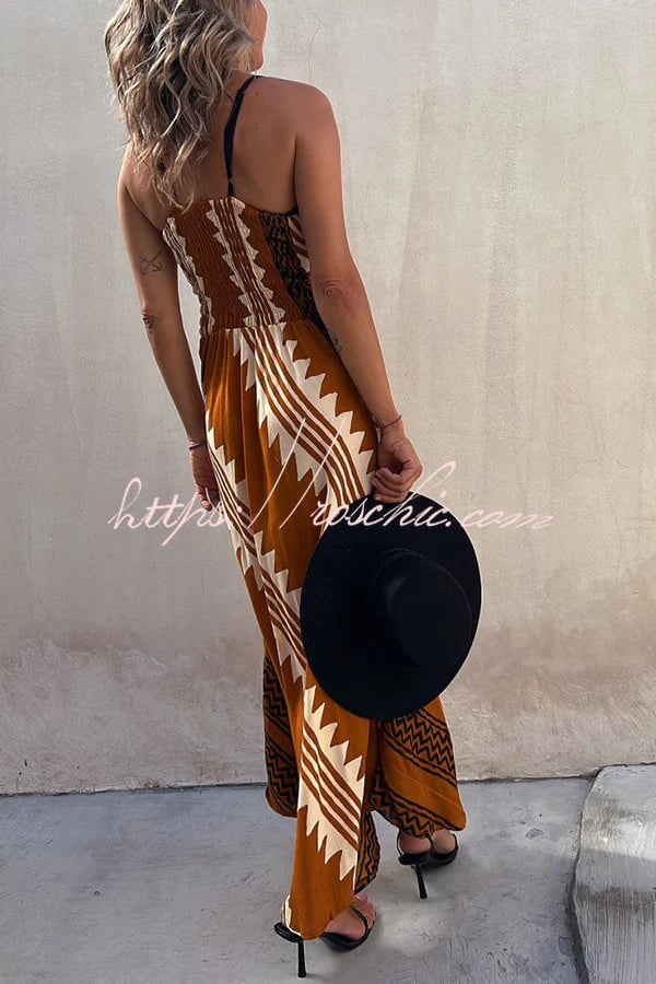 Always Falling Satin Ethnic Print Smocked Back Midi Dress