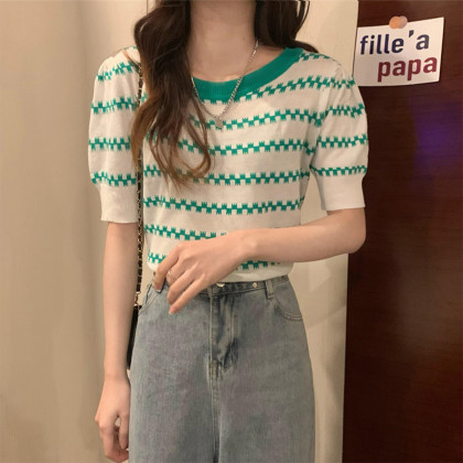 Short sleeve, solid color, basic type, ribbed, crop length, slim fitting, pull on closure